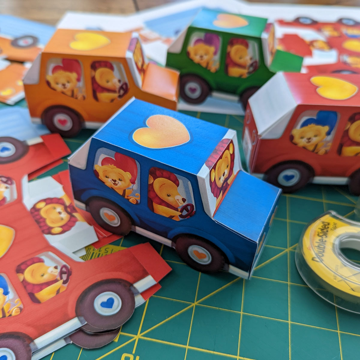 Get ready to hit the road with a really fun box of treats that can still cruise around long after the treats are gone. This collection of brightly colored cars feature a lion and his cub. Need a pit stop? Pop the trunk, grab a treat, and close it up again with the license-plate tab. These treat boxes are ready to hit the road and are perfect for Birthdays, Valentine’s Day, road trips, or just for fun.